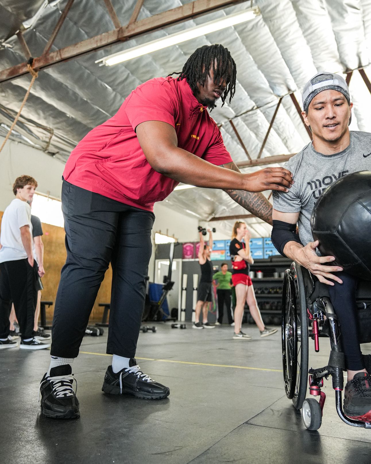 Football athletes Keeshawn Silver and Husan Longstreet and Men’s Basketball athlete Terrance Williams joined a recent Angel City Sports Adaptive Fitness Class for adults with physical disabilities. Through this coaching experience, the House of Victory athletes were exposed to a new definition of Fight On and were given a new appreciation for their own abilities.